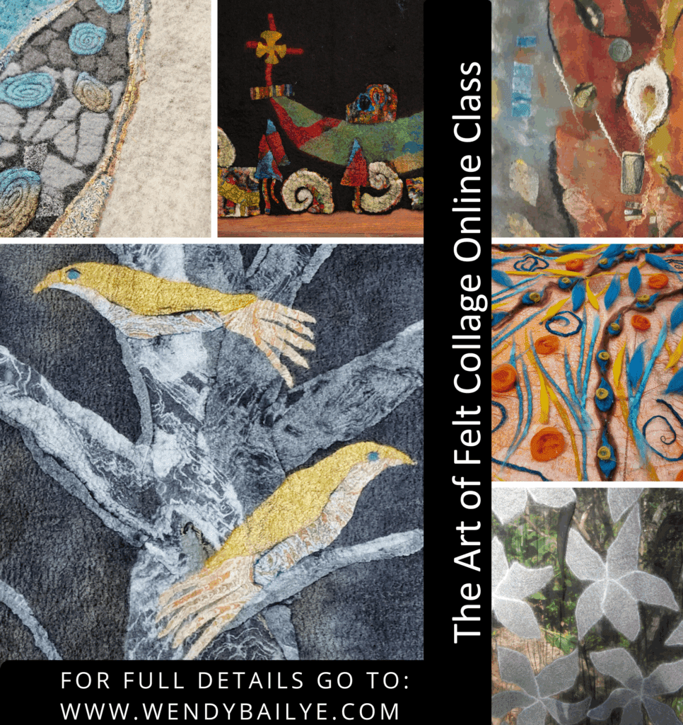 I thrive on play and experimentation with textiles in their many forms, and I love to share the joy I find in my fine art textile work, through teaching and helping others to realise their creative potential. Together, it’s a joyful relationship. Textiles are items that we live most closely and intimately with. They touch us! Of all the types of fibre in the world, wool provides us with comfort like no other. It is my great pleasure to share my love of this beautiful fibre with you.